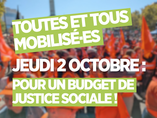 Le jeudi 2 octobre sera une journée de mobilisation et de manifestation intersyndicales contre les mesures budgétaires présentées le 15 juillet dernier, et pour obtenir :